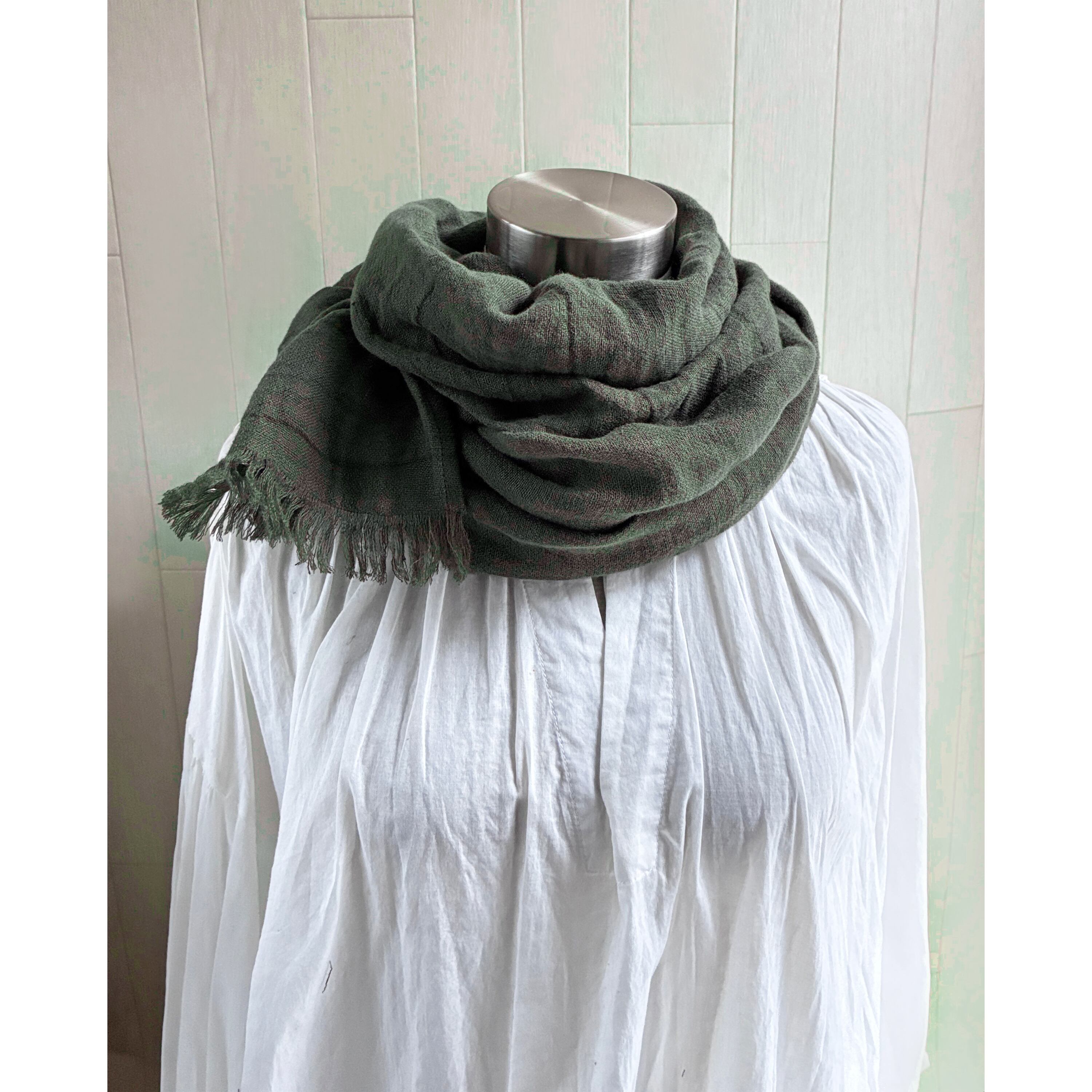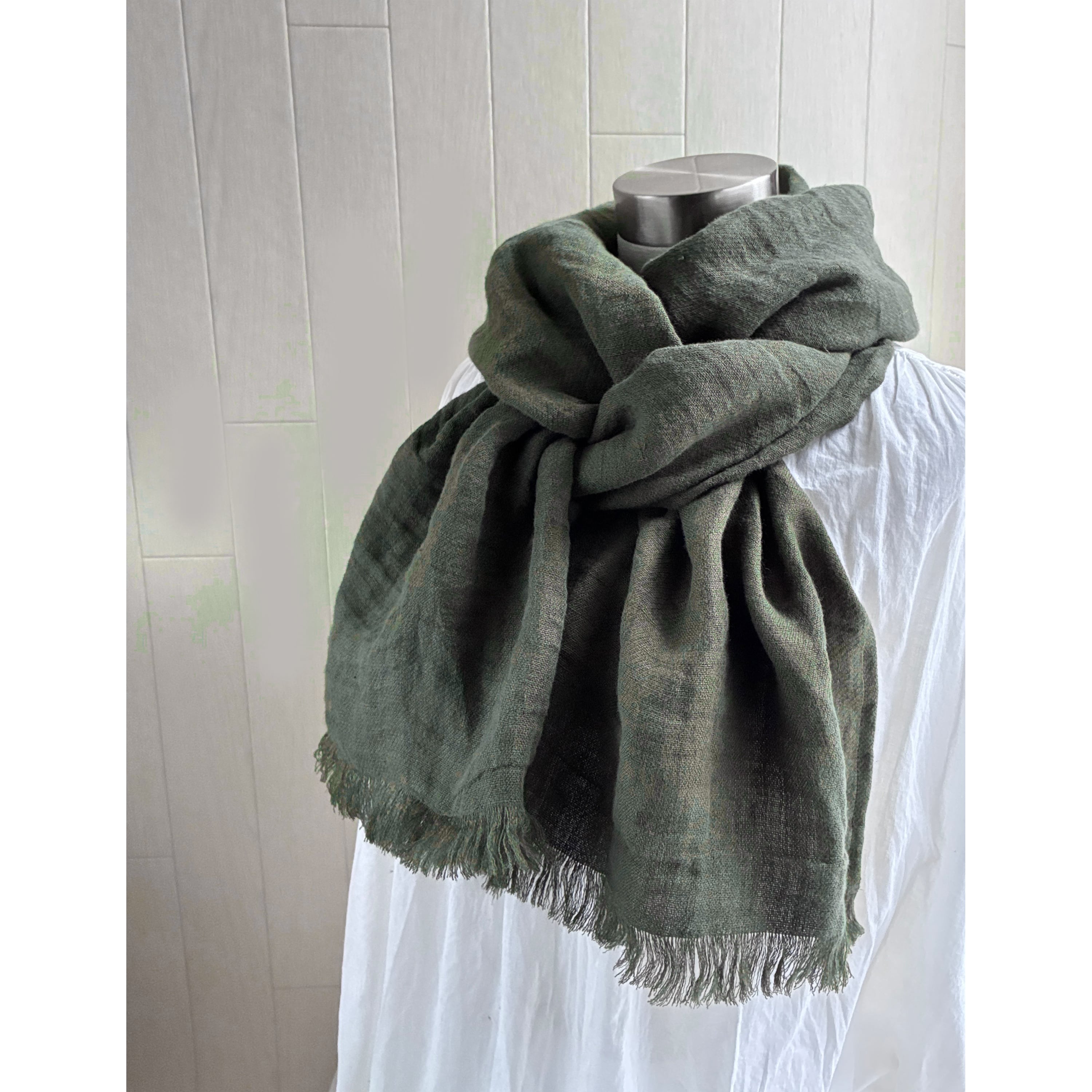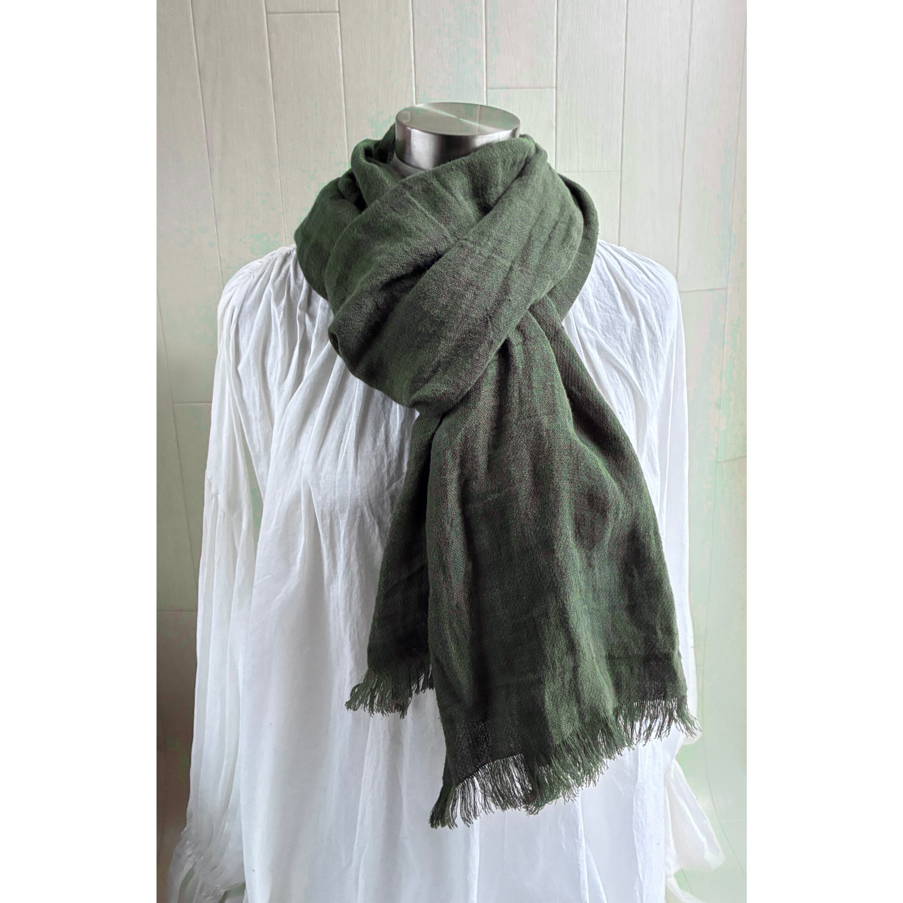 ふっくらリネンのストール ダークオリーブグリーン ダブルガーゼ