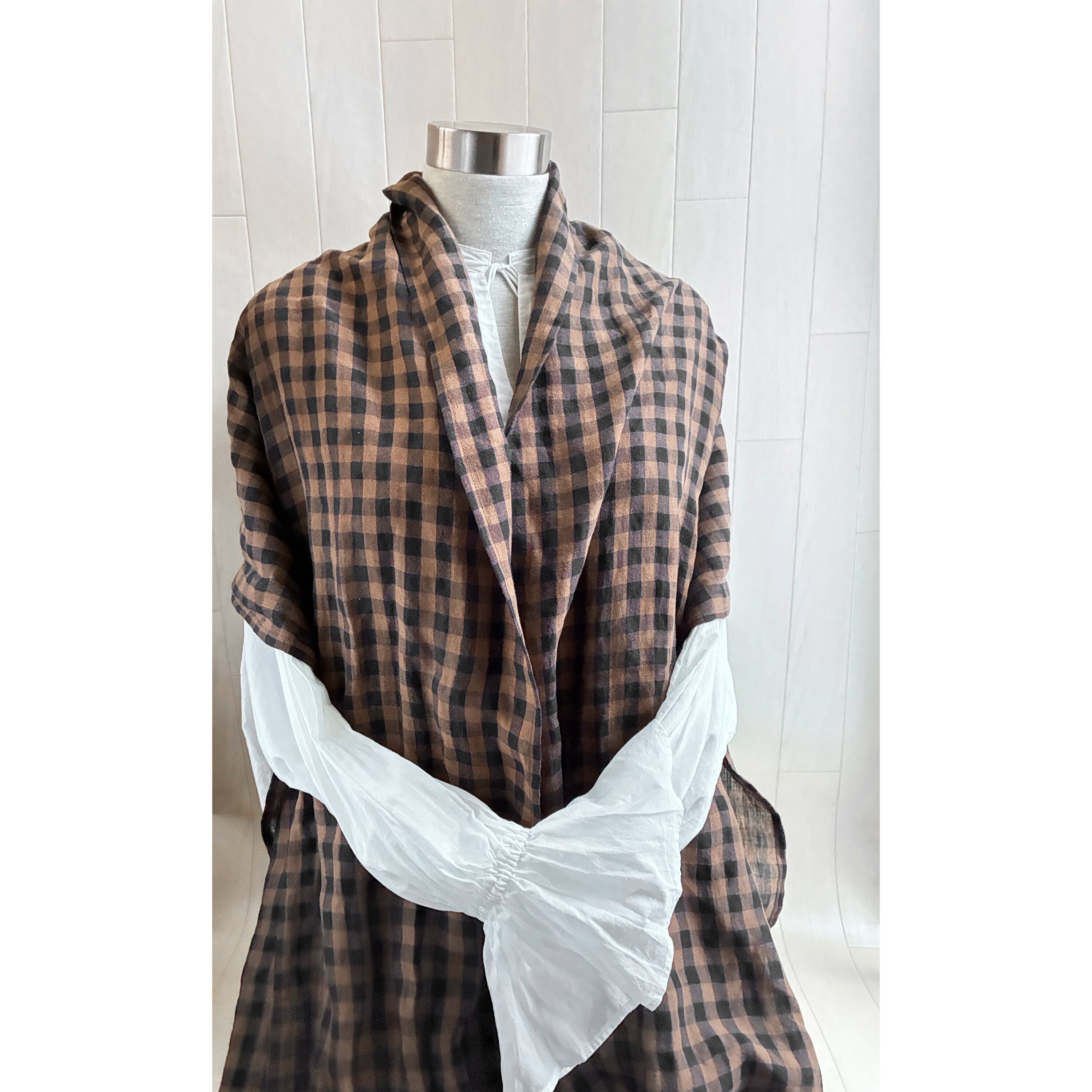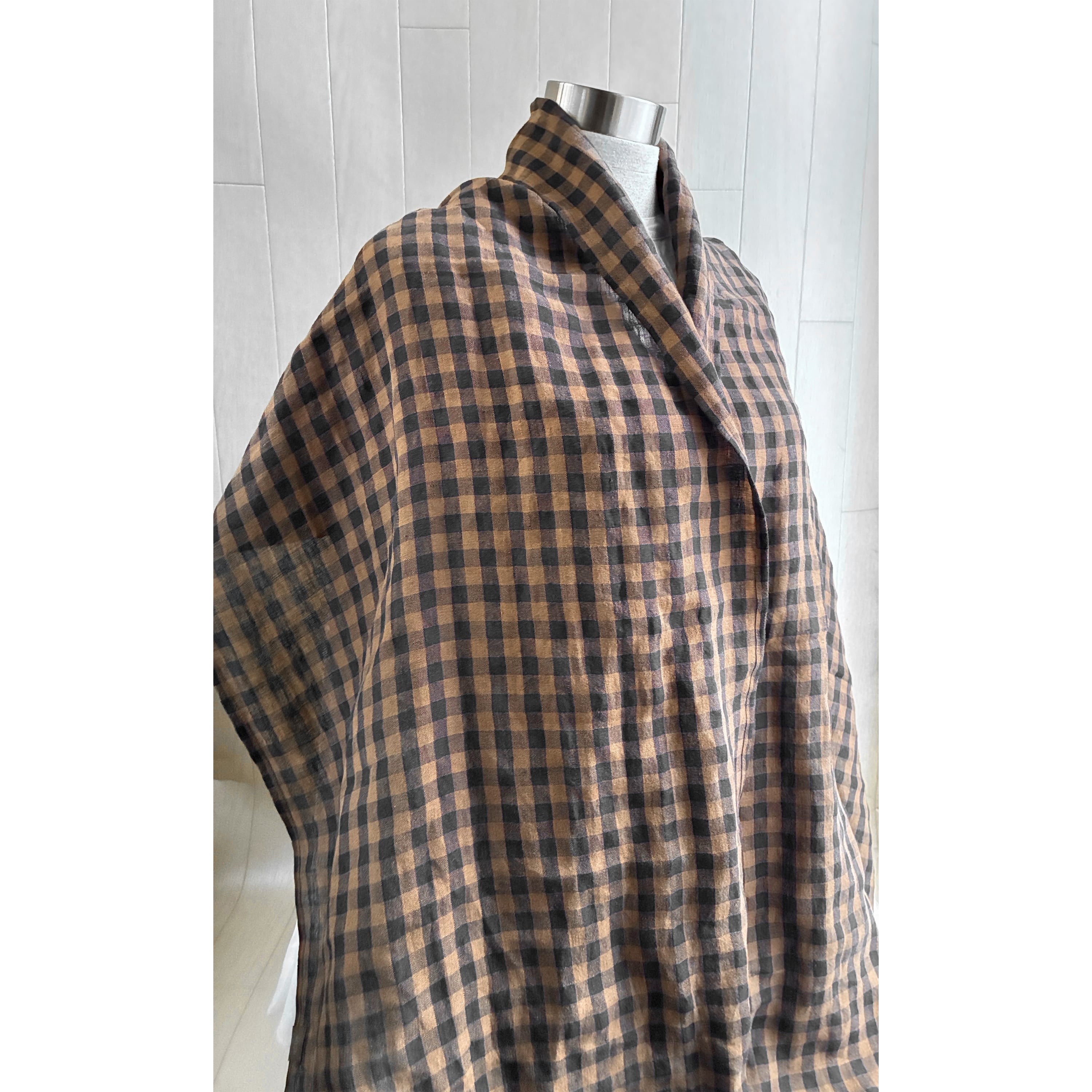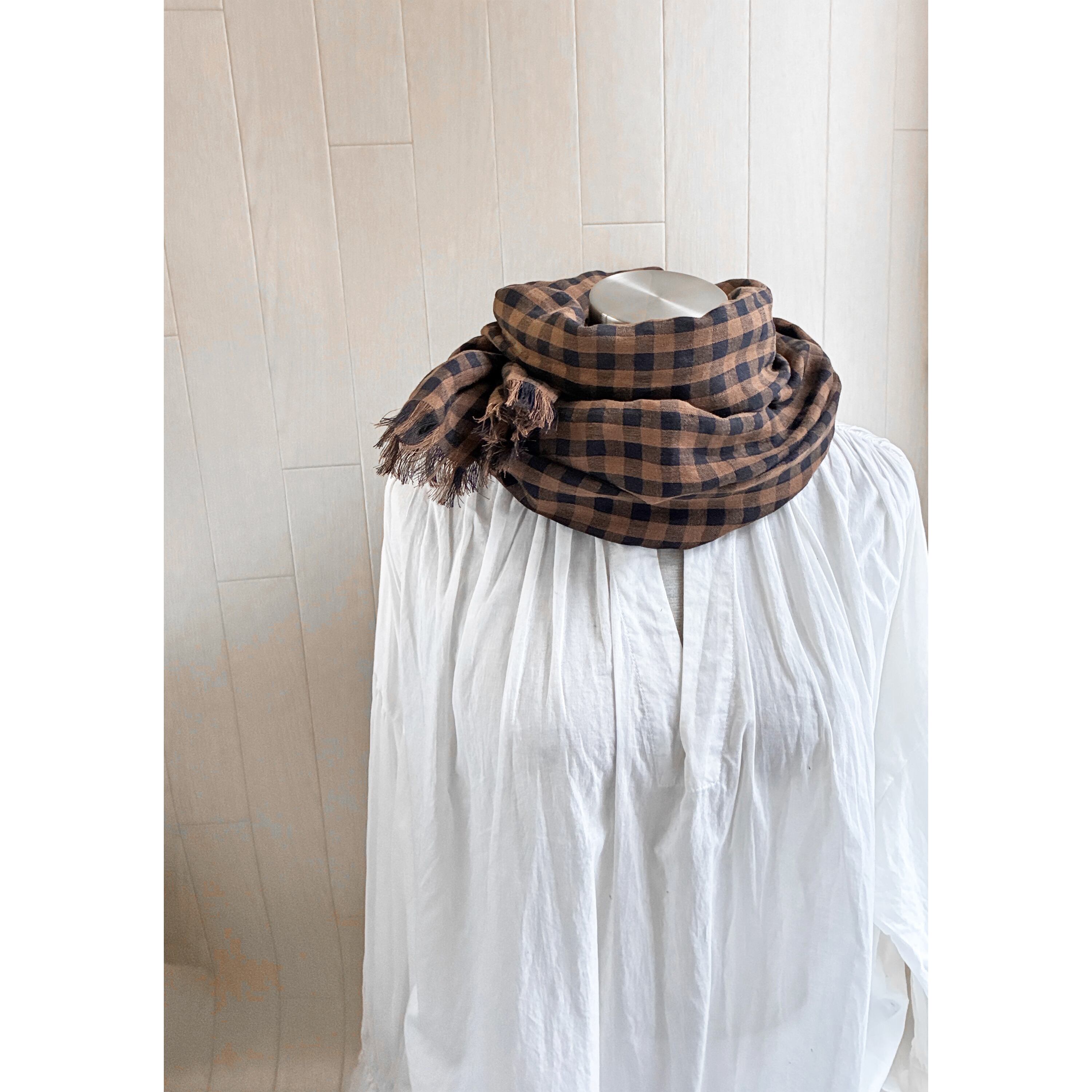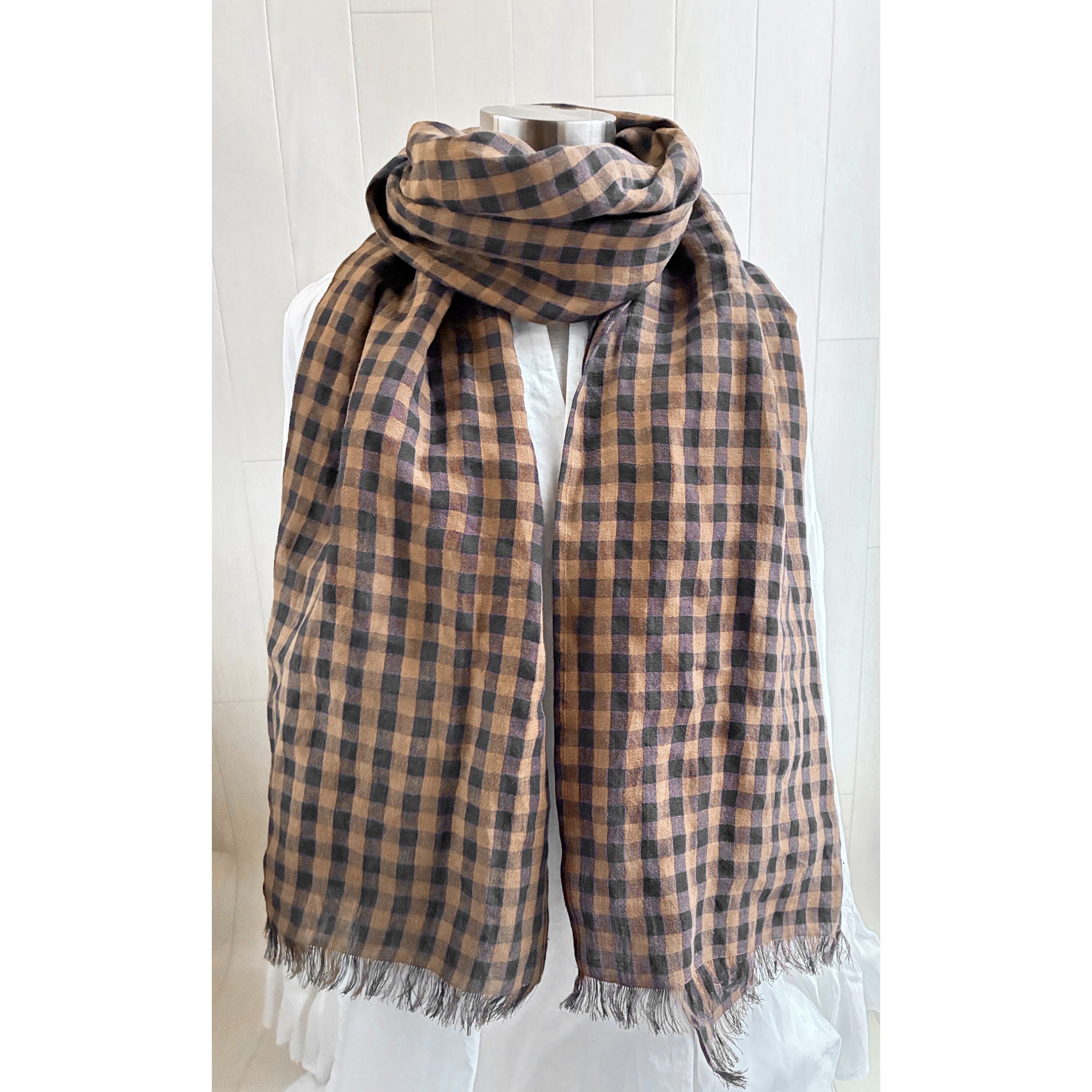 イタリアンリネンのストール ギンガムチェック ブラウン×黒