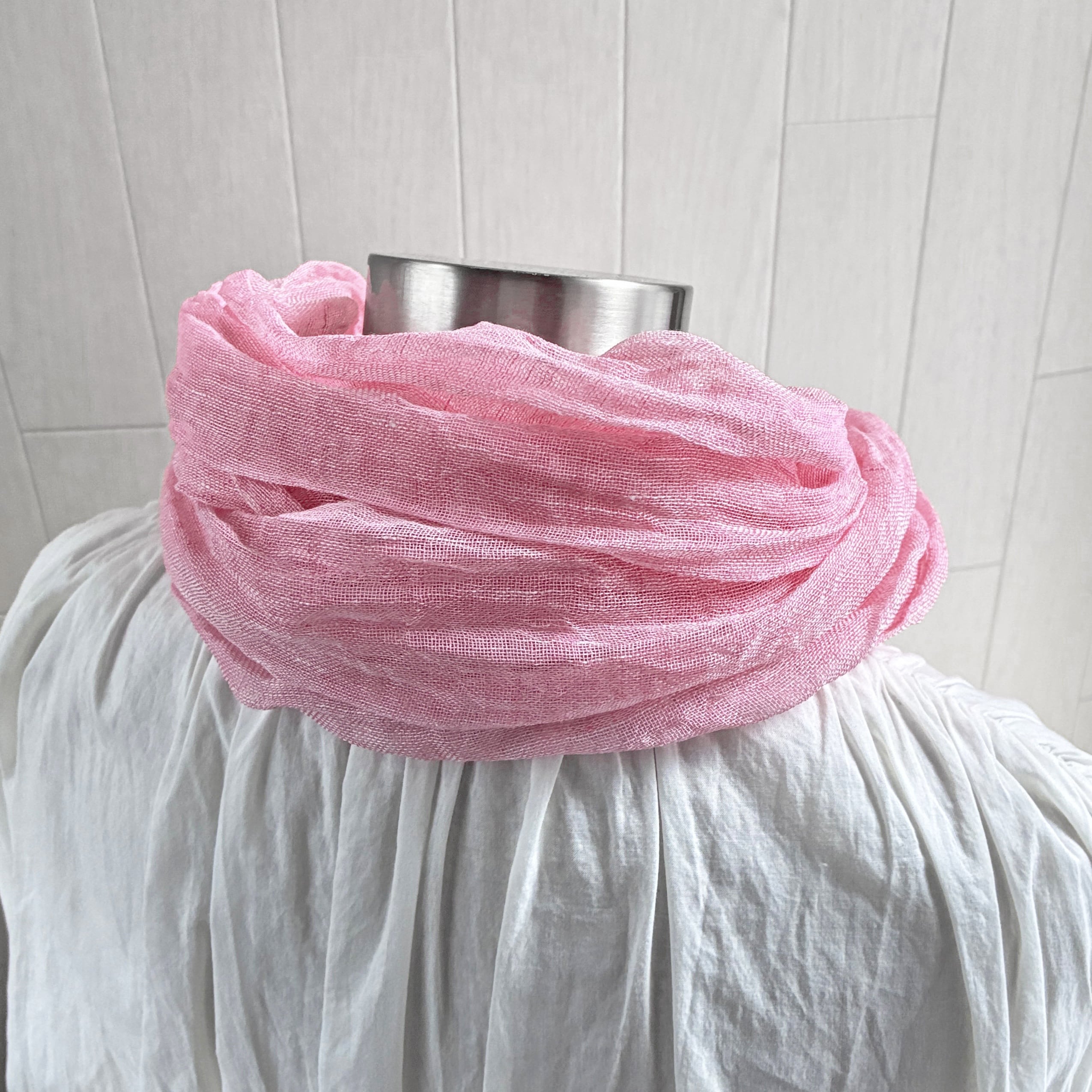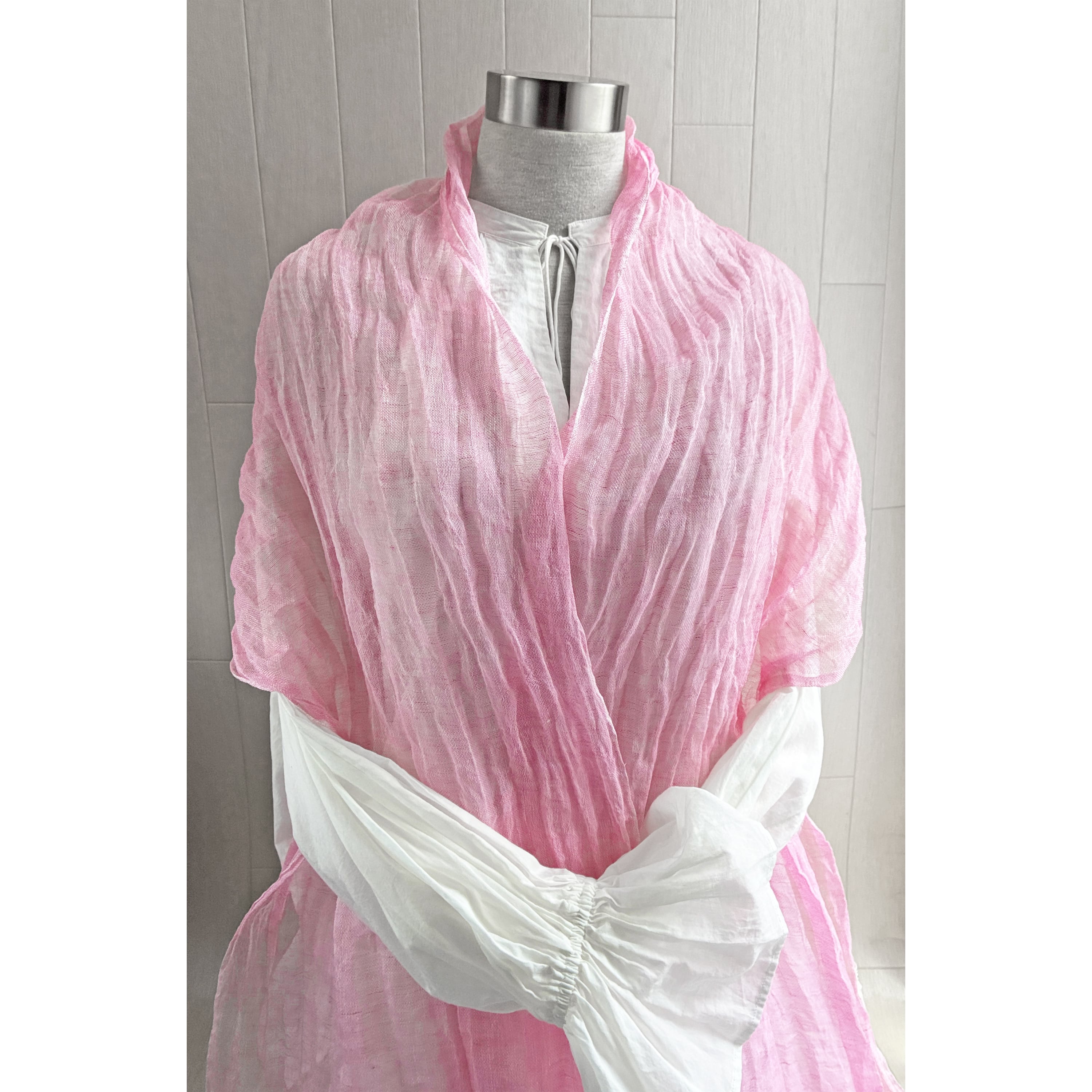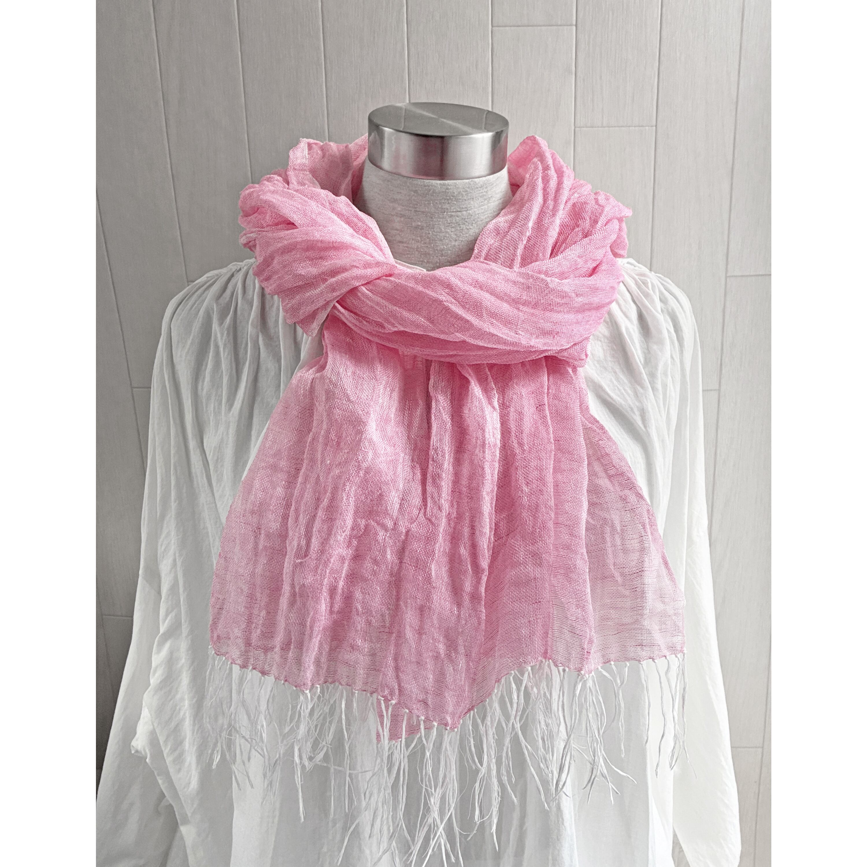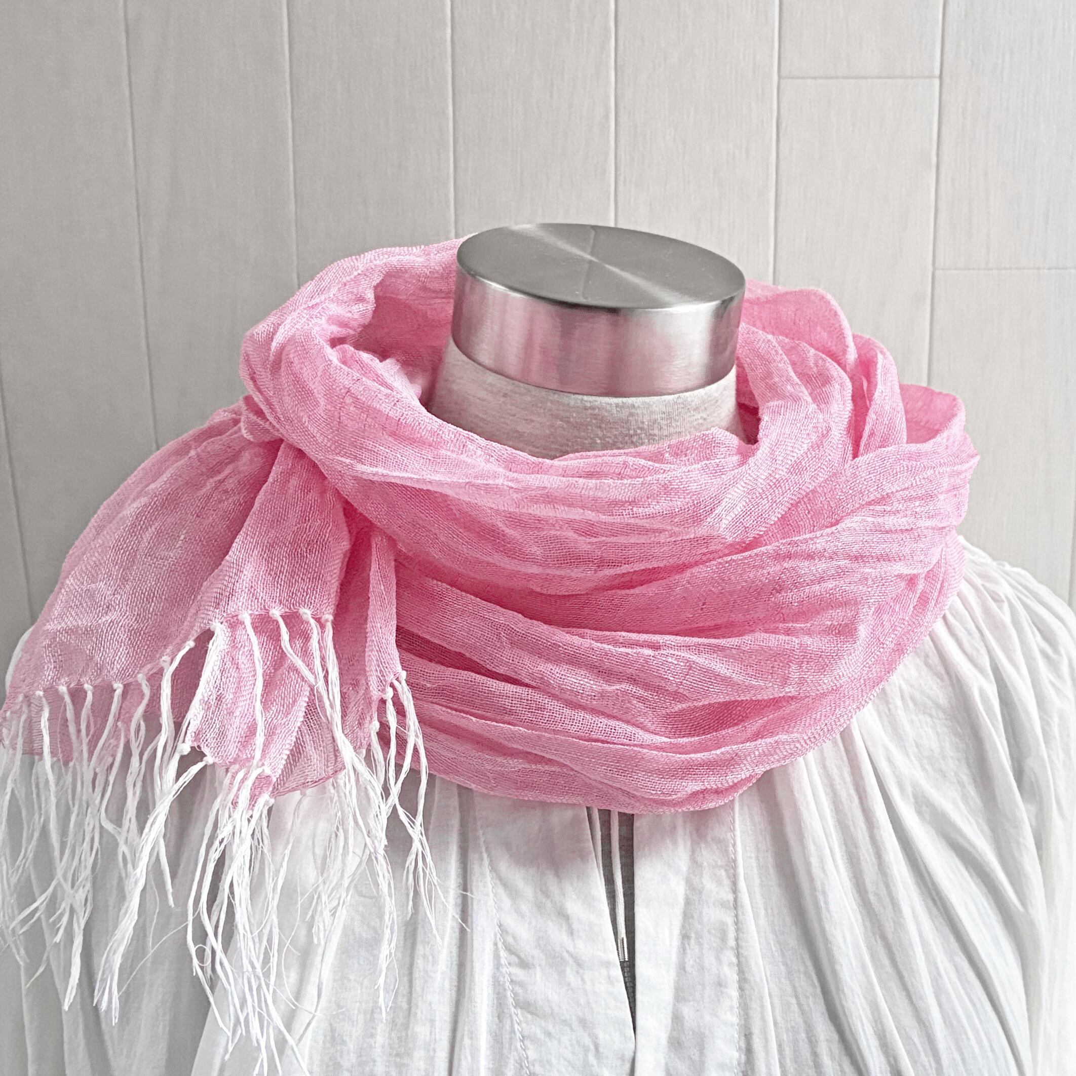 数量限定 上質リネン シングルガーゼのストール ピンク×白