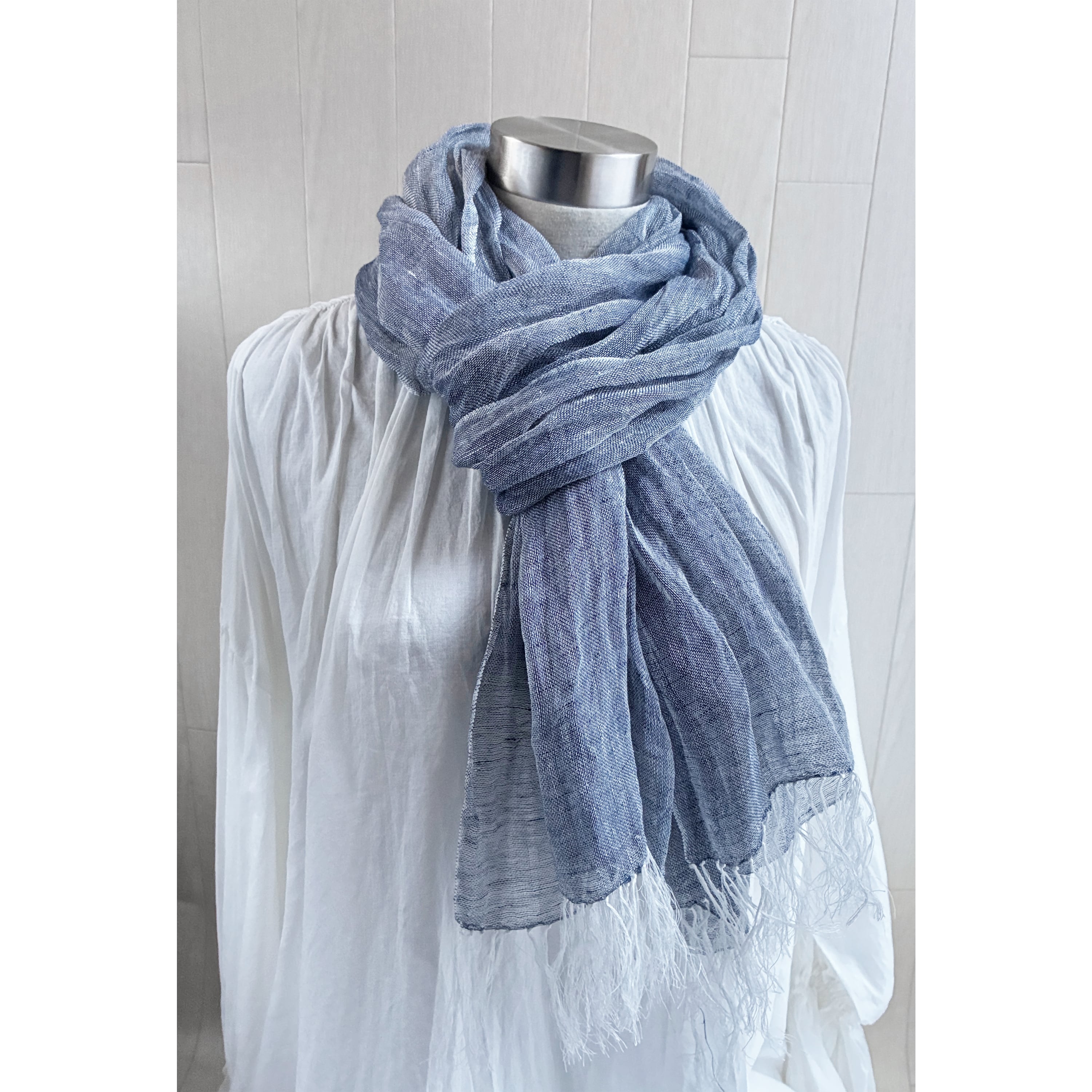 数量限定 上質リネン シングルガーゼのストール ネイビー×白