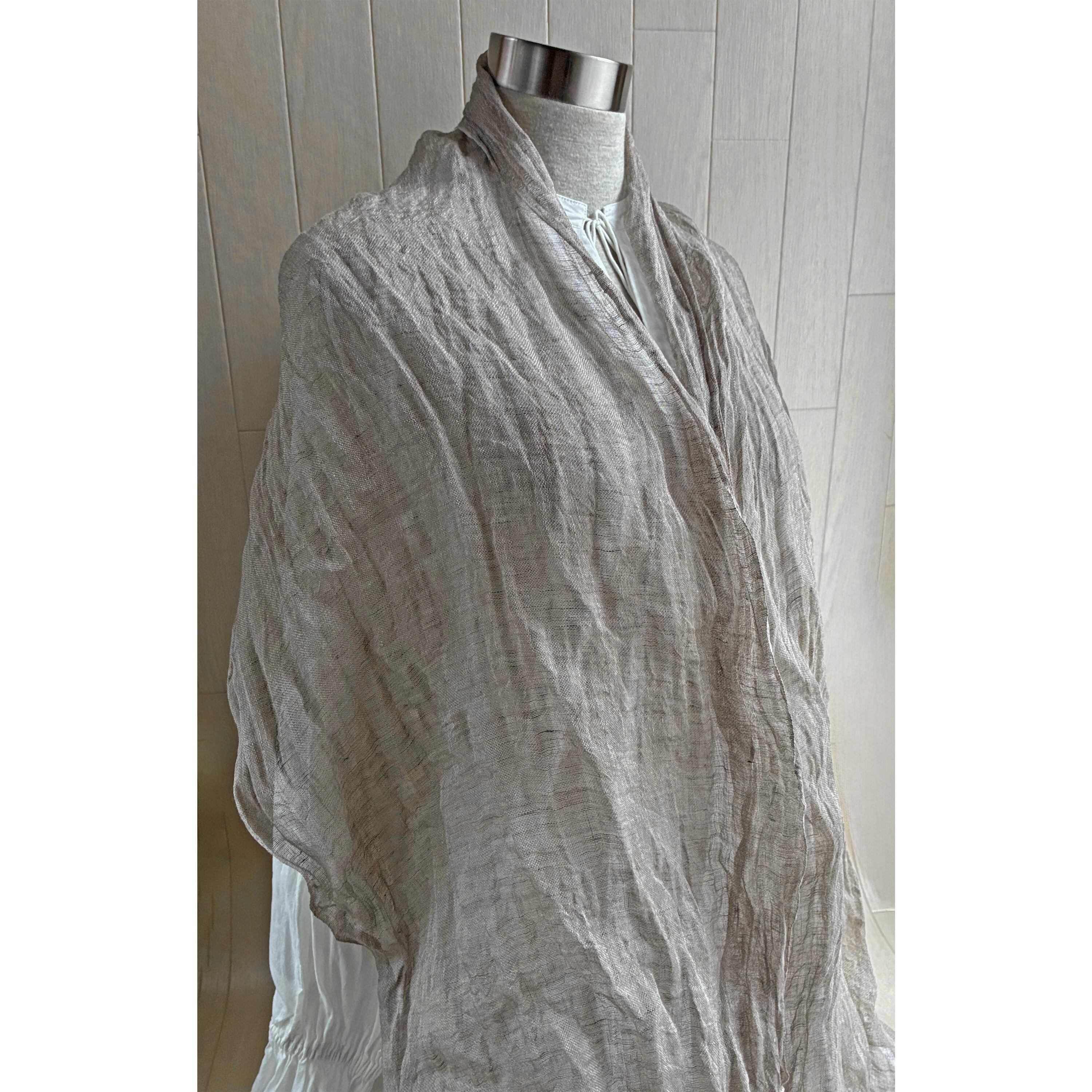 数量限定 上質リネン シングルガーゼのストール グレージュ×亜麻色