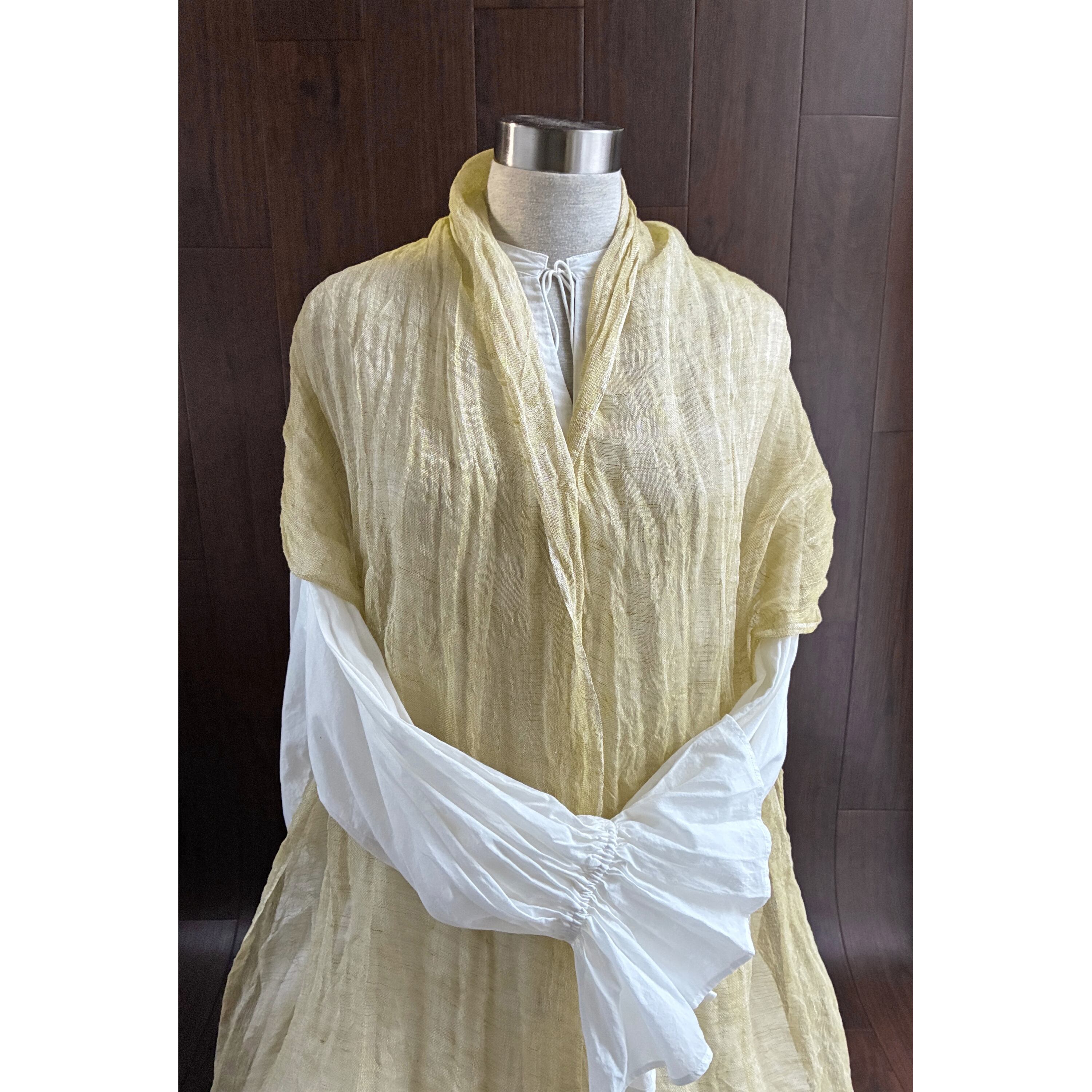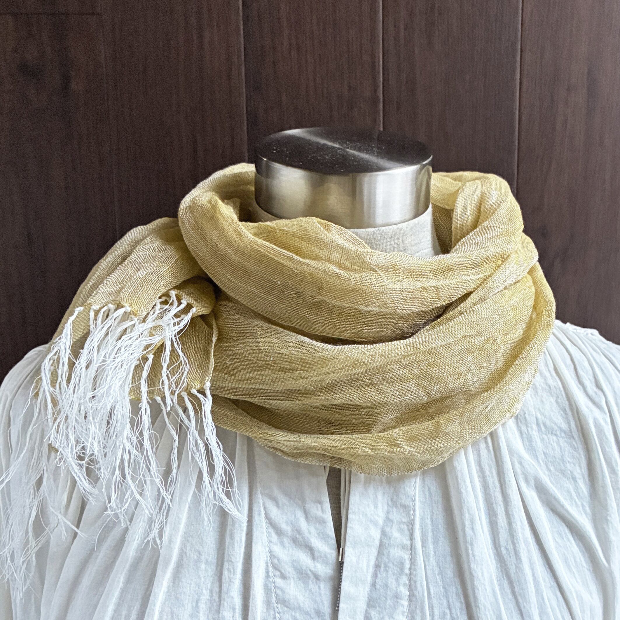 数量限定 上質リネン シングルガーゼのストール くすみイエロー×白