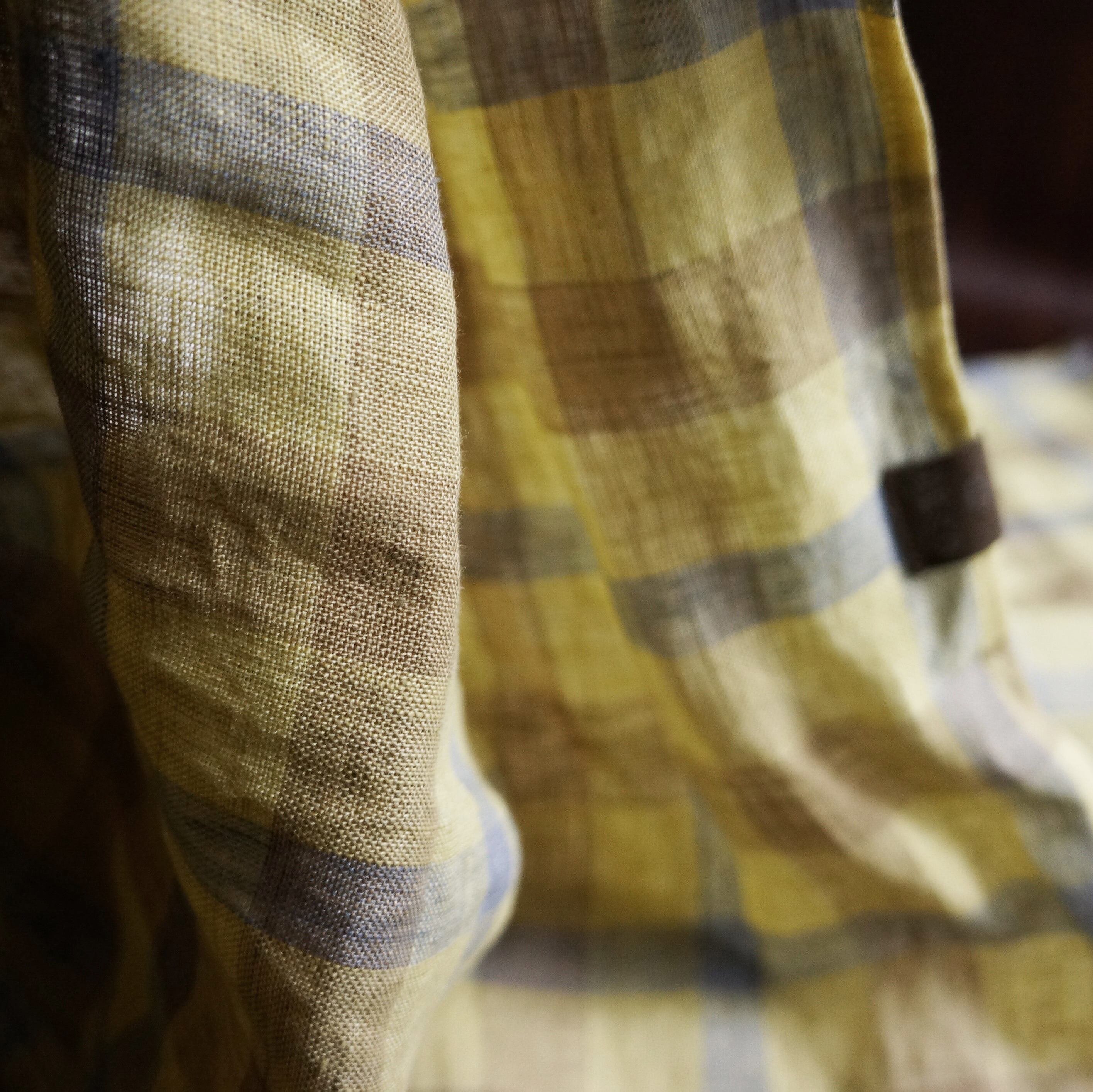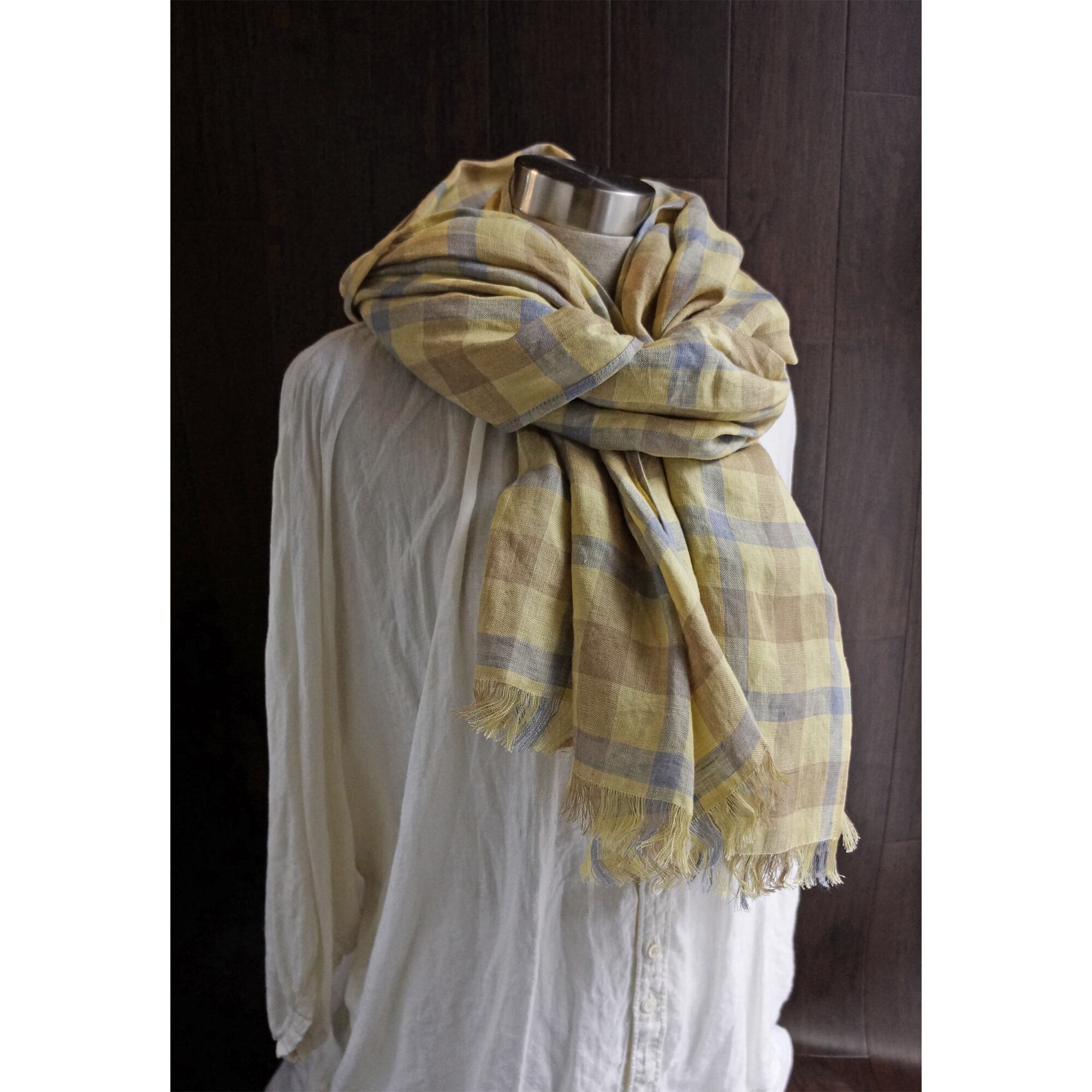 大判 上質リネンのストール チェック イエロー