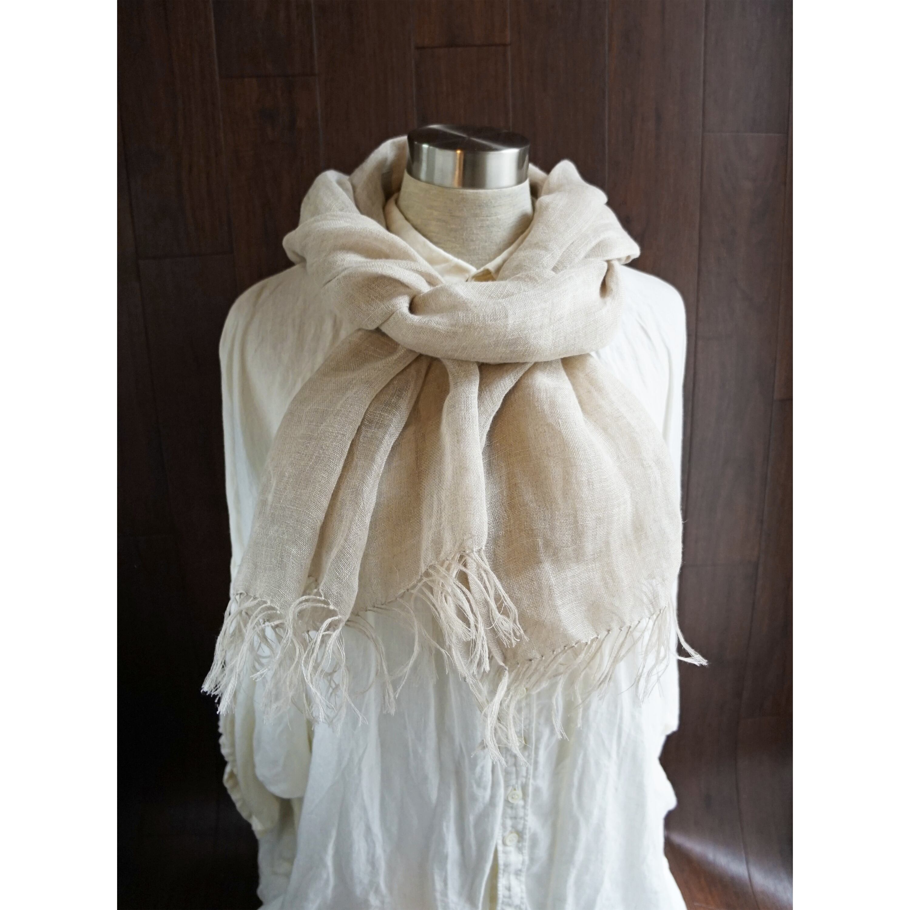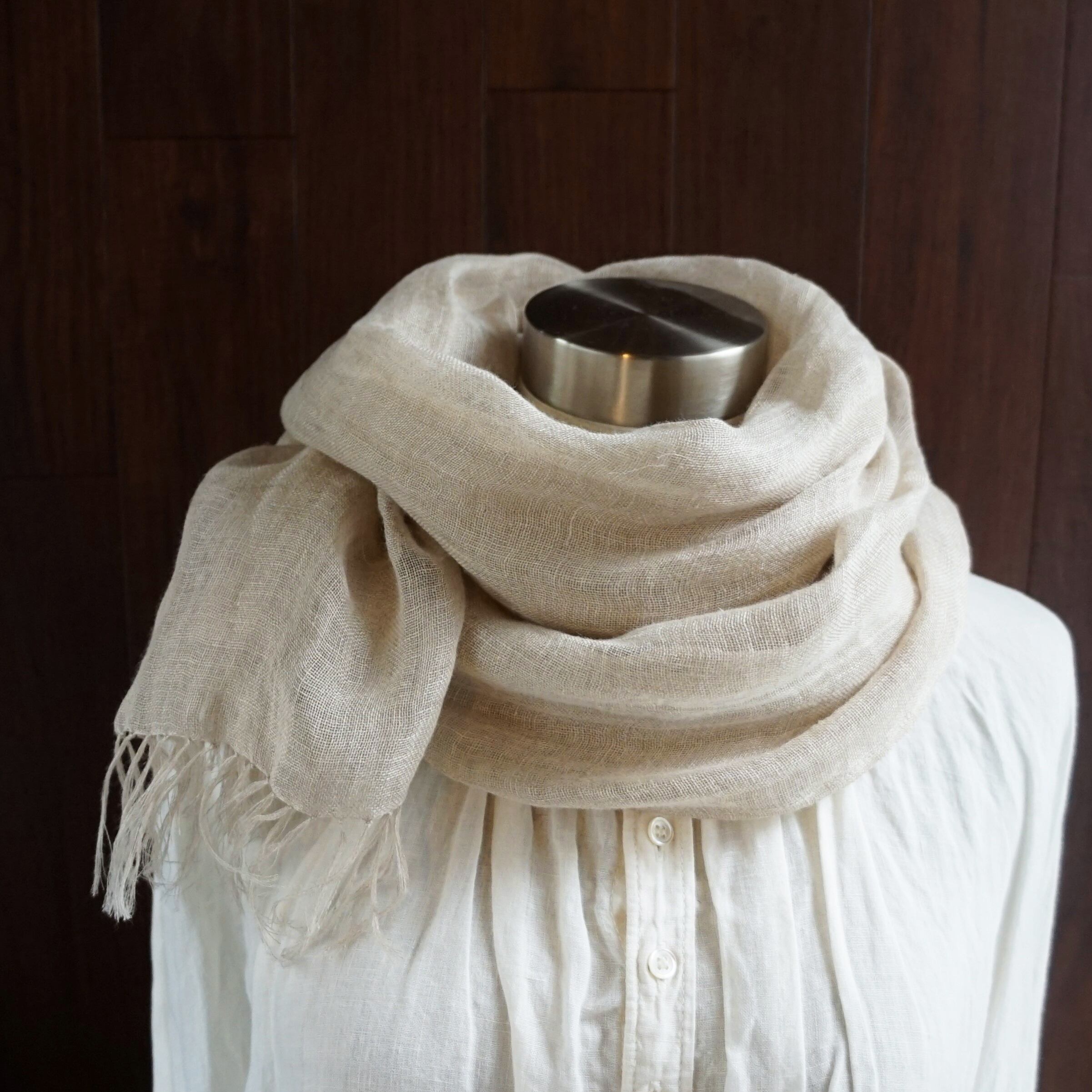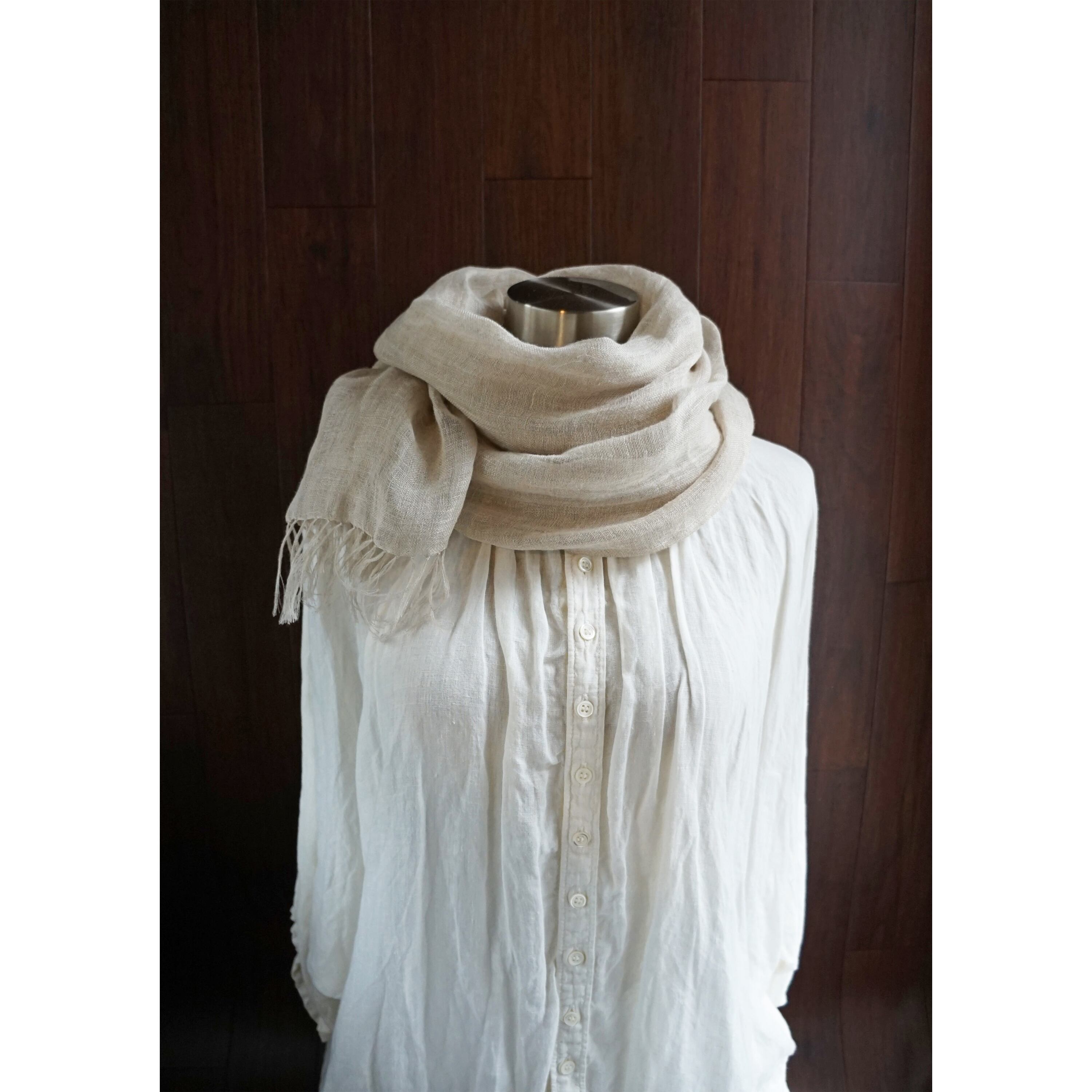 やさしい亜麻色のリネンを使用してお作りしたストールです。